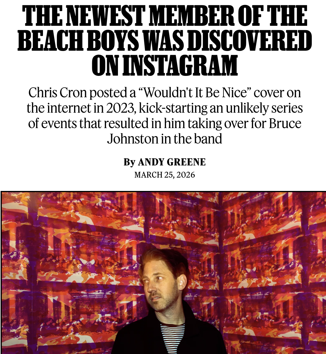 Oh yeah, and he's also a member of The Beach Boys now!