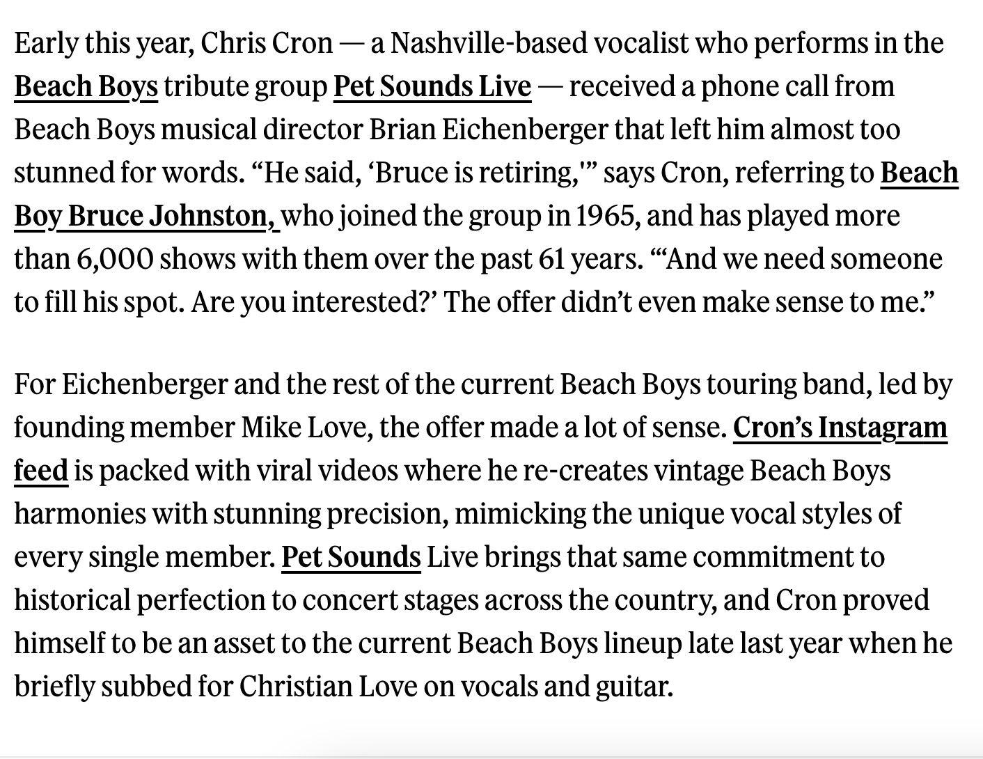 Chris Cron is performing with Pet Sounds Live and doing a show called “How to Sing Like the Beach Boys” at the festival.